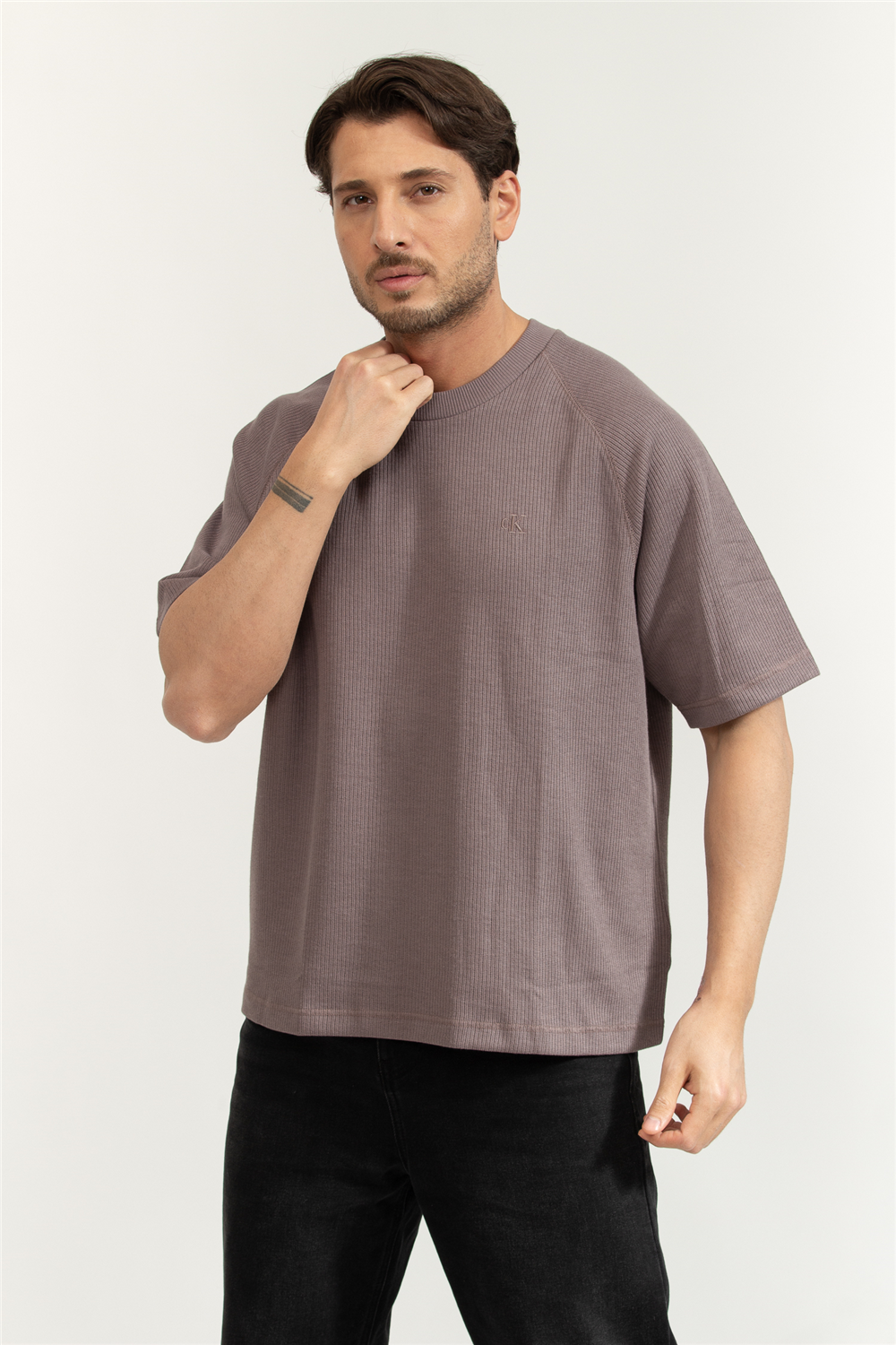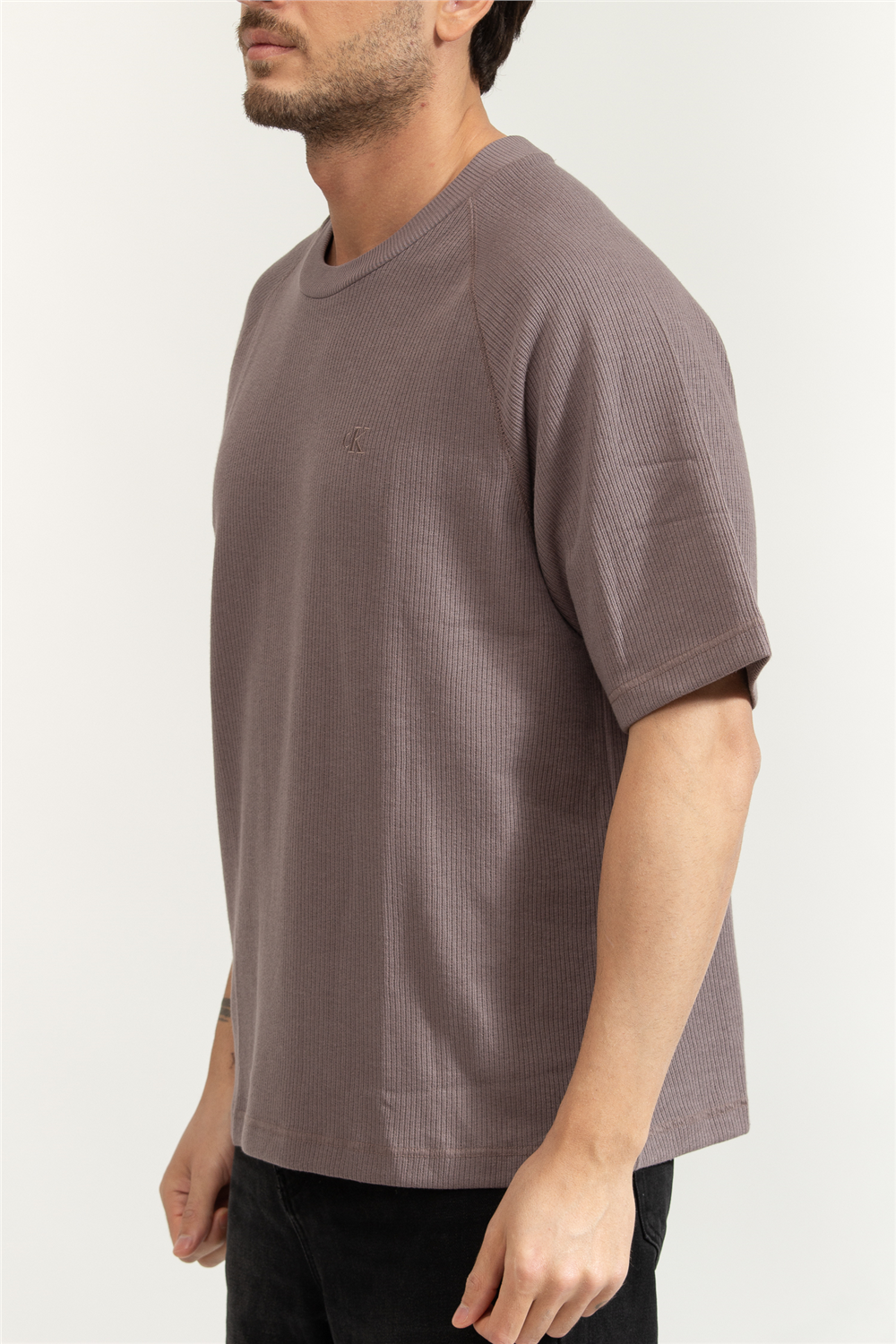 Calvin Klein Cozy Flatback Rib SS Relaxed Tee Erkek Bisiklet Yaka T-Shirt (LV04RE225G)