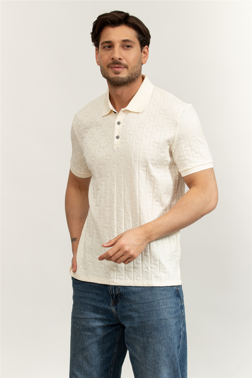 Calvin Klein SS DBL Mercerized Emblem Jacquar Erkek Polo Yaka Triko (LV04LE203G)